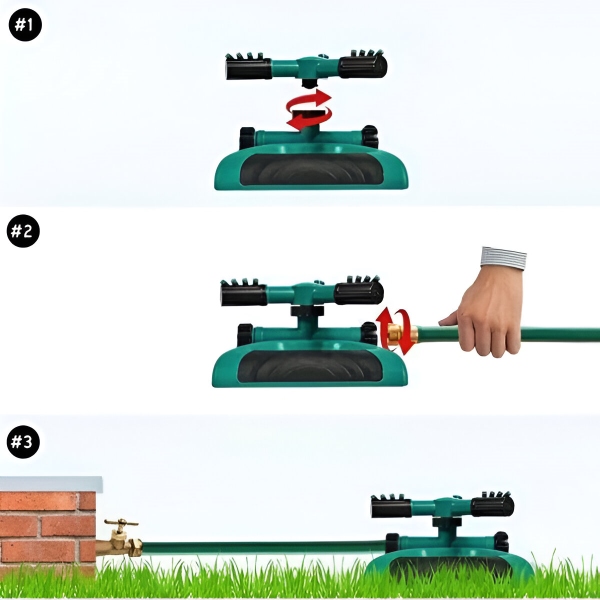 ROTOSPRITZ is gemaakt van hoogwaardig ABS-kunststof met een lekvrij ontwerp en zorgt voor stabiele prestaties en langdurige duurzaamheid. Het driearmige roterende mondstuk kan worden aangepast voor verschillende sproeihoeken, zodat het aan verschillende bewateringsbehoeften kan voldoen en veelzijdigheid biedt in je tuinonderhoudsroutine.