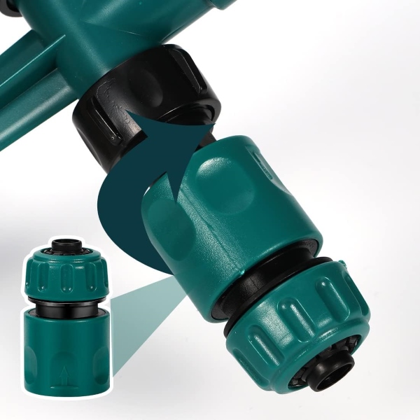 Met de dubbele waterslangsproeiers van ROTOSPRITZ kun je moeiteloos meerdere sprinklers aansluiten om grotere gebieden te bestrijken. Bevestig eenvoudigweg twee of meer ROTOSPRITZ units aan elkaar voor dubbelzijdige irrigatie, zodat je hele tuin de perfecte hoeveelheid water krijgt. Deze naadloze connectiviteit maakt hem ideaal voor uitgestrekte gazons en uitgestrekte tuinbedden.