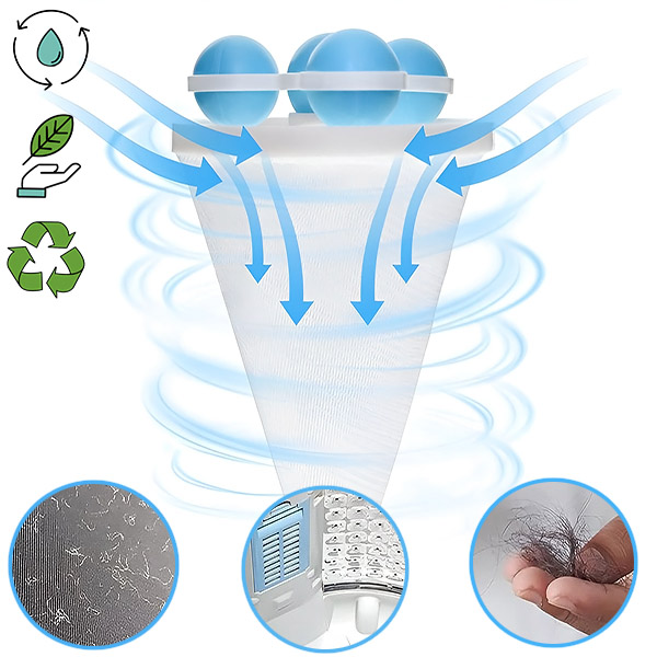 Plaats het filter gewoon in je wasmachine voordat je de cyclus start. Laat het drijven, vuil opvangen en je kleding fris houden. Maak het filter schoon na het wassen en het is klaar voor het volgende gebruik!