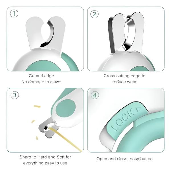 Het ingebouwde LED-lampje verlicht de nagel van je huisdier duidelijk, zodat je verwondingen kunt voorkomen door de exacte knippositie aan te geven.