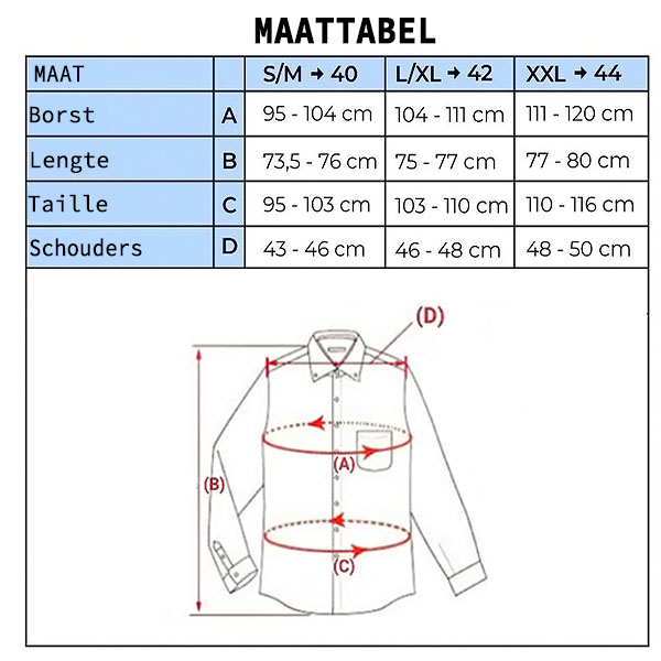Het overhemd vormt zich goed naar het lichaam en loopt vanaf de borst naar de taille smaller toe.