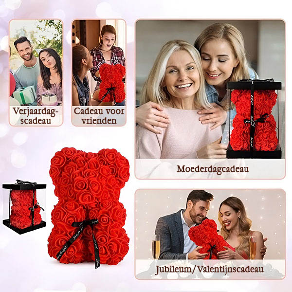 🎁 Verras haar met een romantische teddybeer gemaakt van niet-verwelkende rozen.