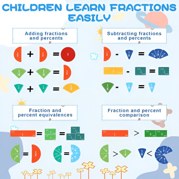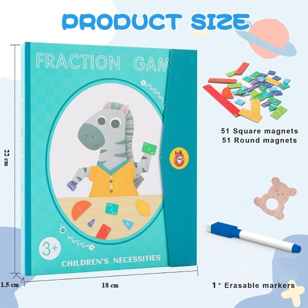 Bevat 9 kleurrijke magnetische cirkels en rechthoeken om breuken gemakkelijk te visualiseren en te begrijpen.