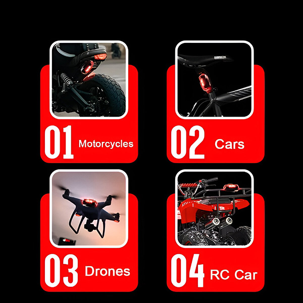 De meeste lampen vereisen beugels, schroeven of permanente aanpassingen die niet werken op verschillende voertuigen. STROBIES wordt in seconden bevestigd met klittenband of rubberen ringen – geen gereedschap, niet boren, geen schade aan uw voertuig. Wissel het tussen uw auto, motorfiets, fiets, drone, helm of rugzak wanneer u maar wilt.
