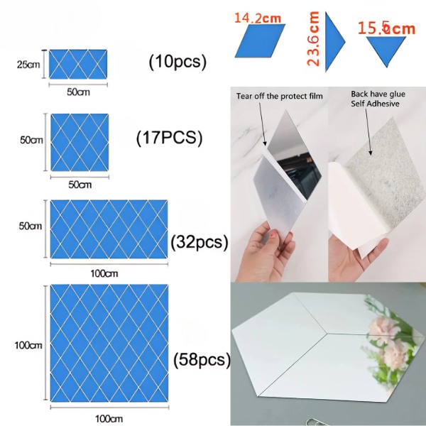 Materiaal: Acryl spiegel met beschermfolie (verwijderen voor gebruik)