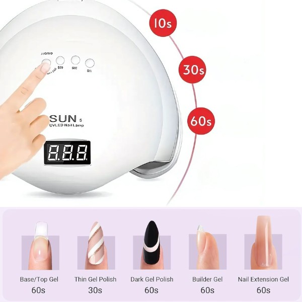 Met 3 timerinstellingen (10s, 30s, 60s) kun je het droogproces aanpassen op basis van je geltype en persoonlijke behoeften. De slimme sensor schakelt automatisch in wanneer je handen of voeten onder de lamp worden geplaatst, wat elke keer een probleemloze ervaring garandeert.